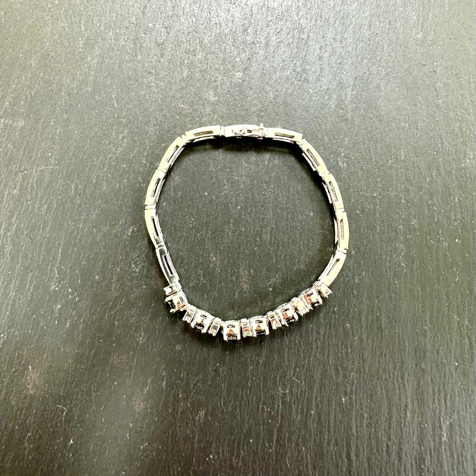 Stones set in claw settings, bracelet bar links are 3.7mm wide, 7" length, with 2 figure of eight safety clips