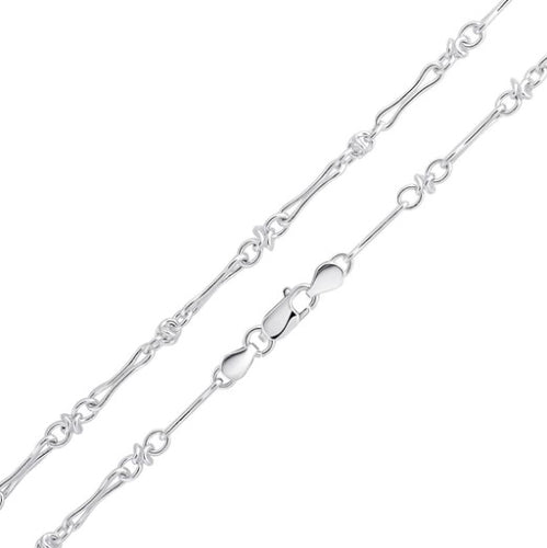 Sterling Silver Pinched Bar and Knot Chain Bracelet
