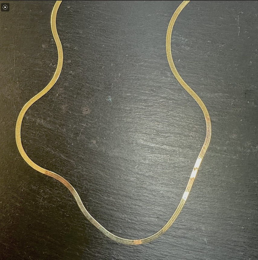 14ct yellow Gold 2.5mm wide flat snake chain style necklace, 18" with lobster clasp