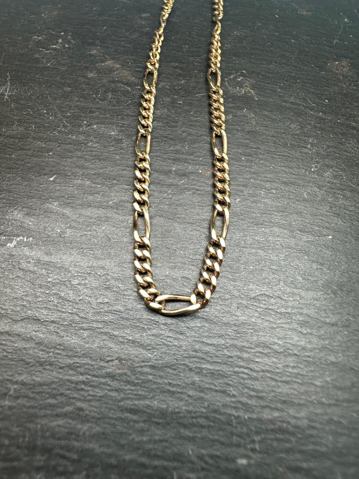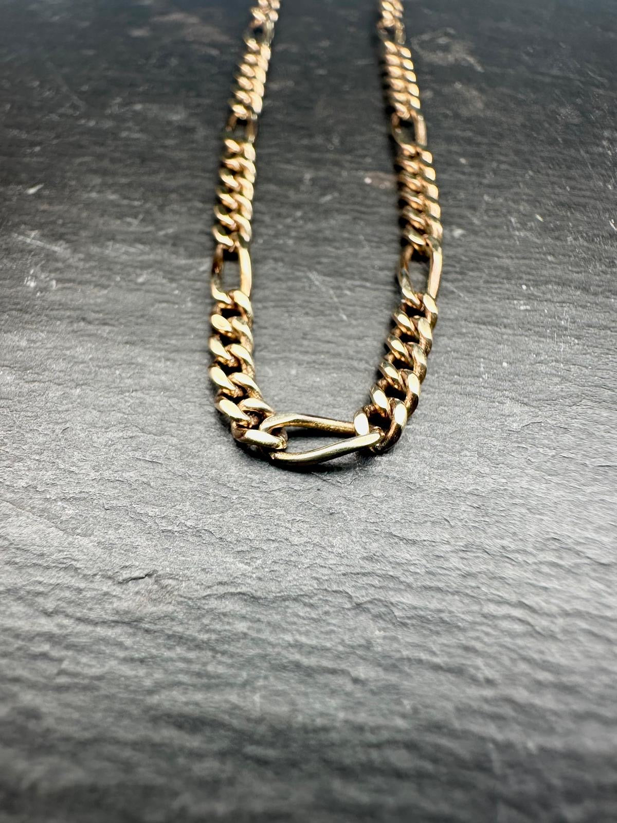 9ct Yellow Gold 2.5mm wide 3 + 1 Figaro chain, with lobster clasp, 18"