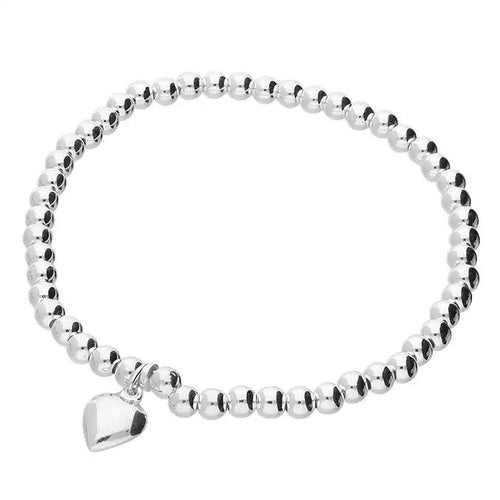 Sterling Silver Elasticated Bead Bracelet with Heart