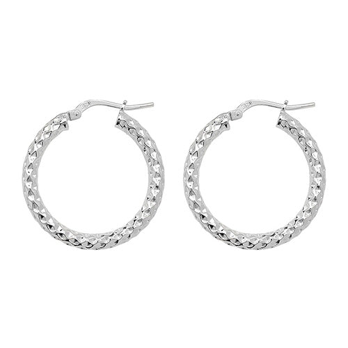 25mm Sterling Silver Diamond Cut Hoop Earrings