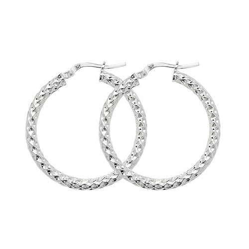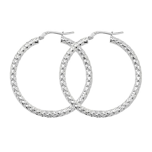 30mm Sterling Silver Diamond Cut Hoop Earrings