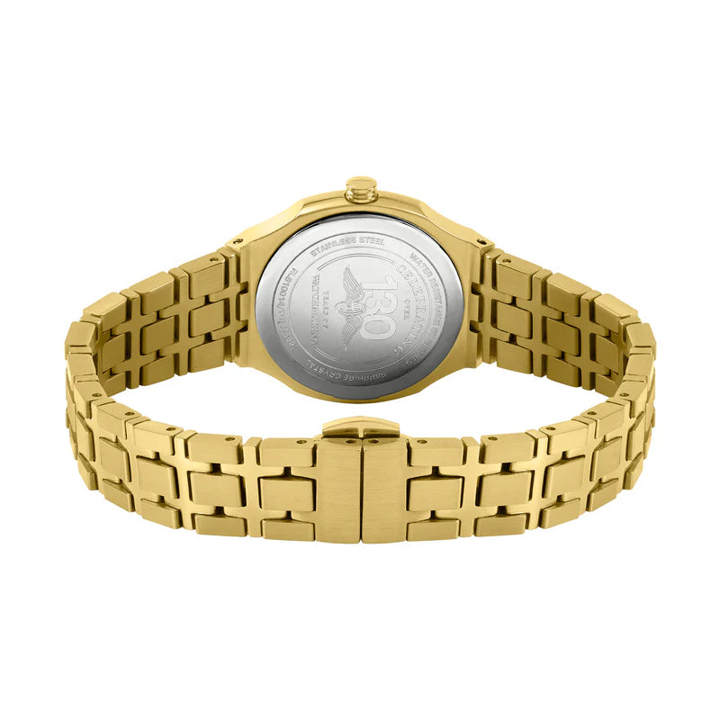 The Rotary Brilliance blends contemporary design with timeless femininity. Its distinctive gold PVD 30mm octagonal case is set with sparkling crystals that catch the light with every movement. A white tapisserie dial echoes the geometric charm of the case, while sleek gold tone baton hour markers and a practical date window at 3 o’clock offer refined functionality. Powered by a reliable quartz movement and water-resistant to 50m, the Rotary Brilliance is designed with everyday wear in mind. Finished with an integrated gold PVD bracelet, this timepiece perfectly balances sports watch design with delicate proportions.