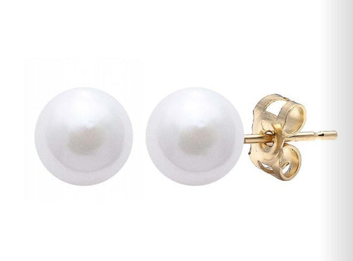 White 6mm Cultured Pearl & 9ct Yellow Gold Stud Earrings