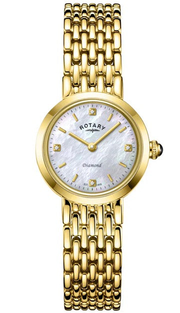 With classic proportions this Rotary Heritage Diamond features a 22.7mm gold PVD case bringing a clean and understated presence to the wrist, making it highly versatile. To the right of the case we find an ornate crown with a cabochon at the 3 position, whilst the 7-link bracelet perfectly flows out from the case, giving it a seamless feel.