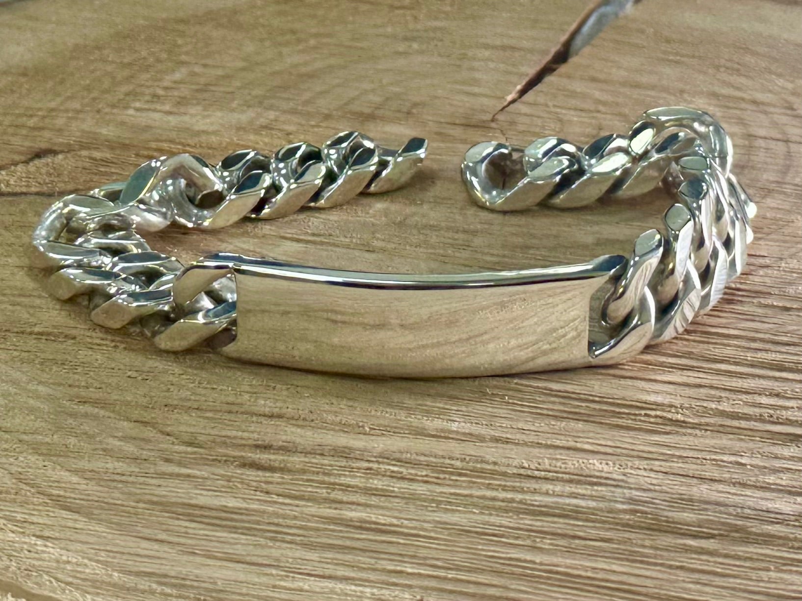 Sterling Silver 2" ID bar bracelet, 13mm wide, curb chain bracelet, solid links
