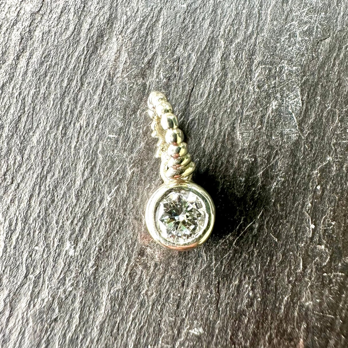 et into a plain 9ct White Gold Rubover pendant, with beaded bale