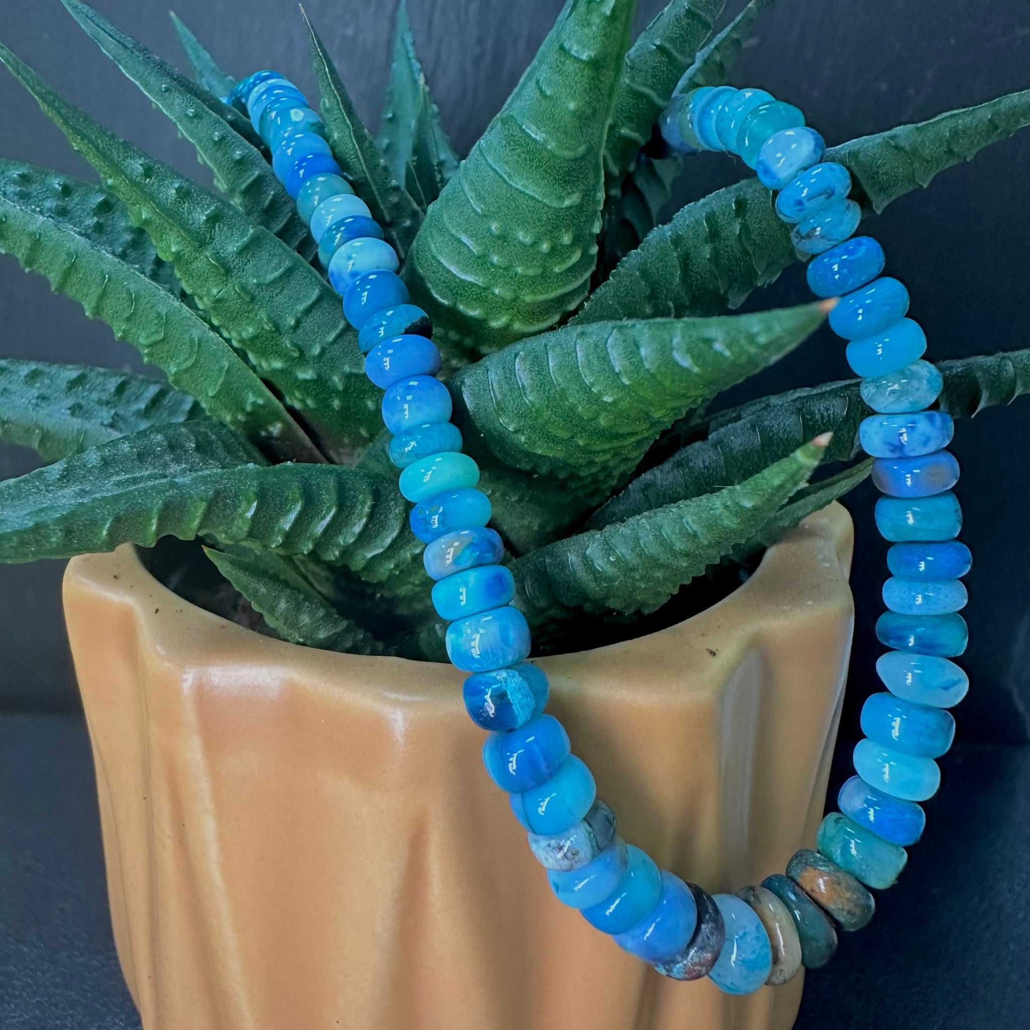 Blue Opalina (or Peruvian Blue Opal) is a beautiful, scarce, semi-precious gemstone from Peru, known for its soft blue to blue-green hues, often with delicate banding or matrix, resembling the Caribbean Sea, and is formed from hydrated silica but is not a "play-of-color" opal, often containing Chrysocolla and valued for its calming, communicative, and emotionally supportive metaphysical properties