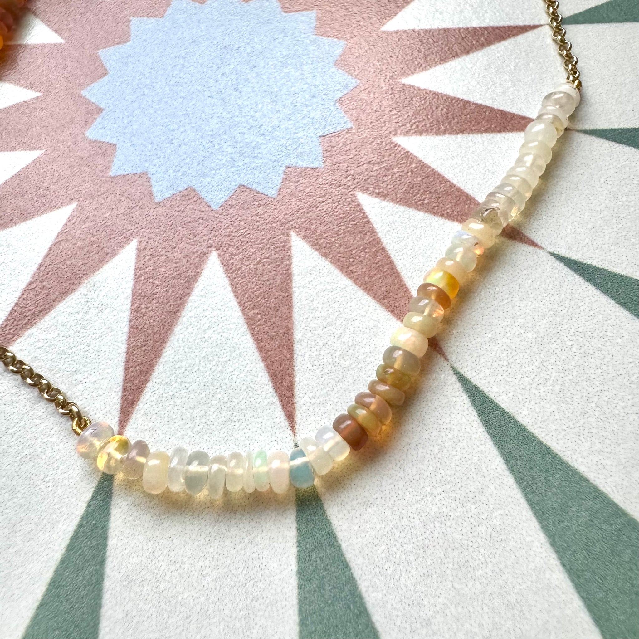 A 4" section of polished opal beads, set as an aymmetric necklace with gold plated chain