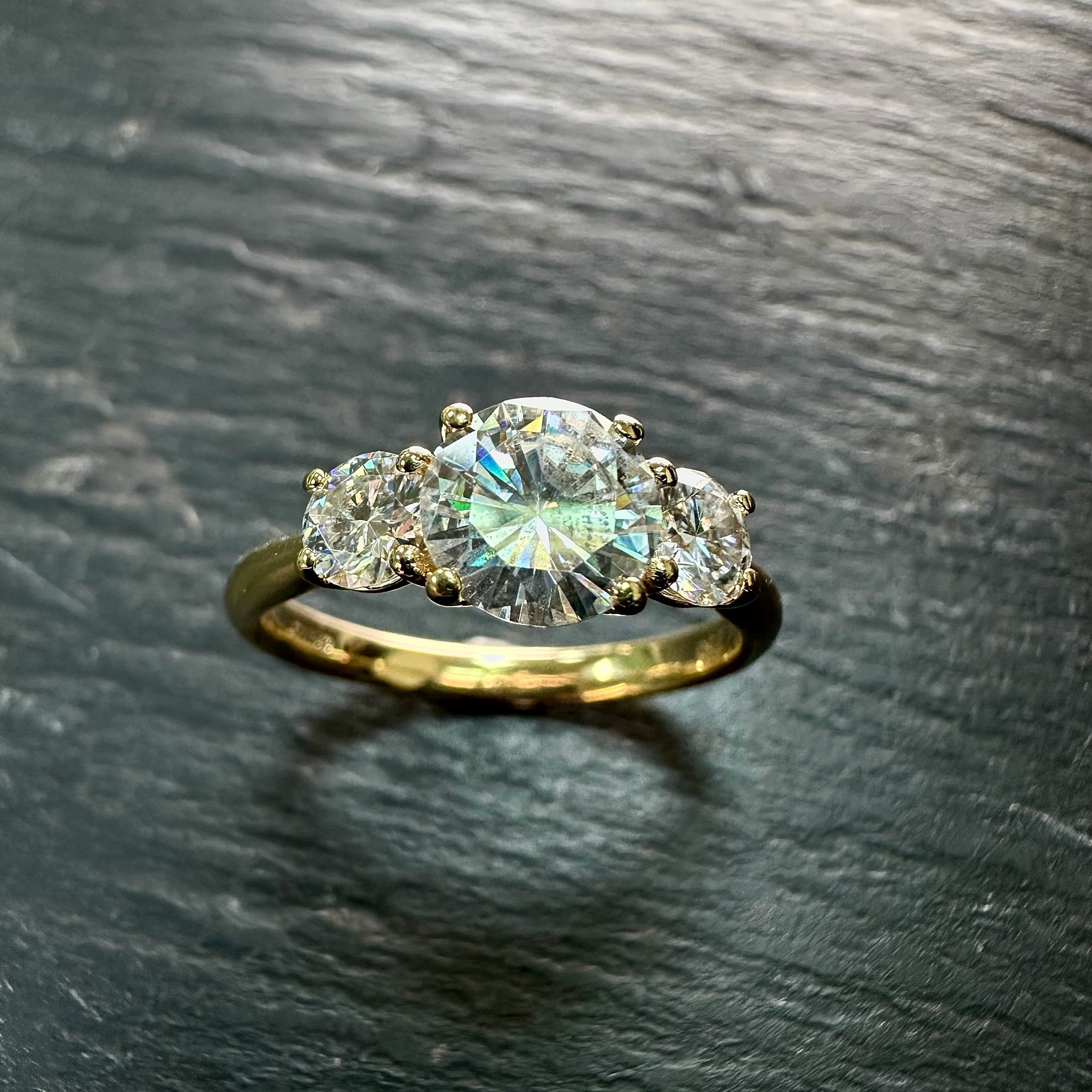 3 Stone Moissanite ring, set in 18ct Yellow Gold