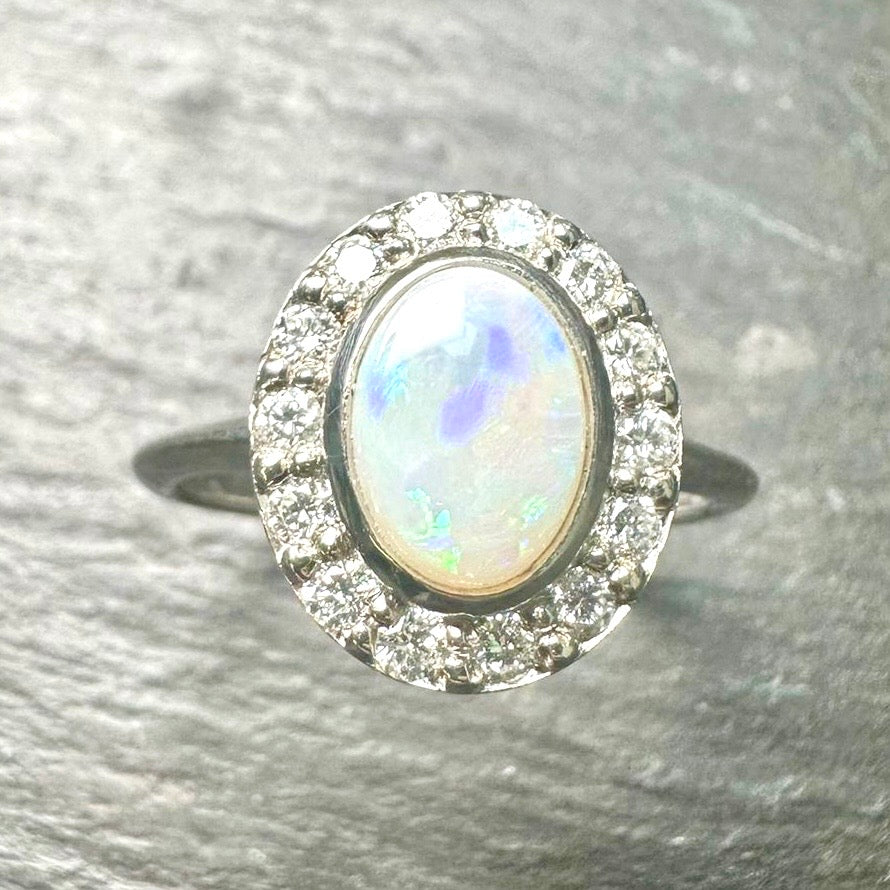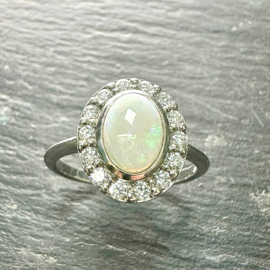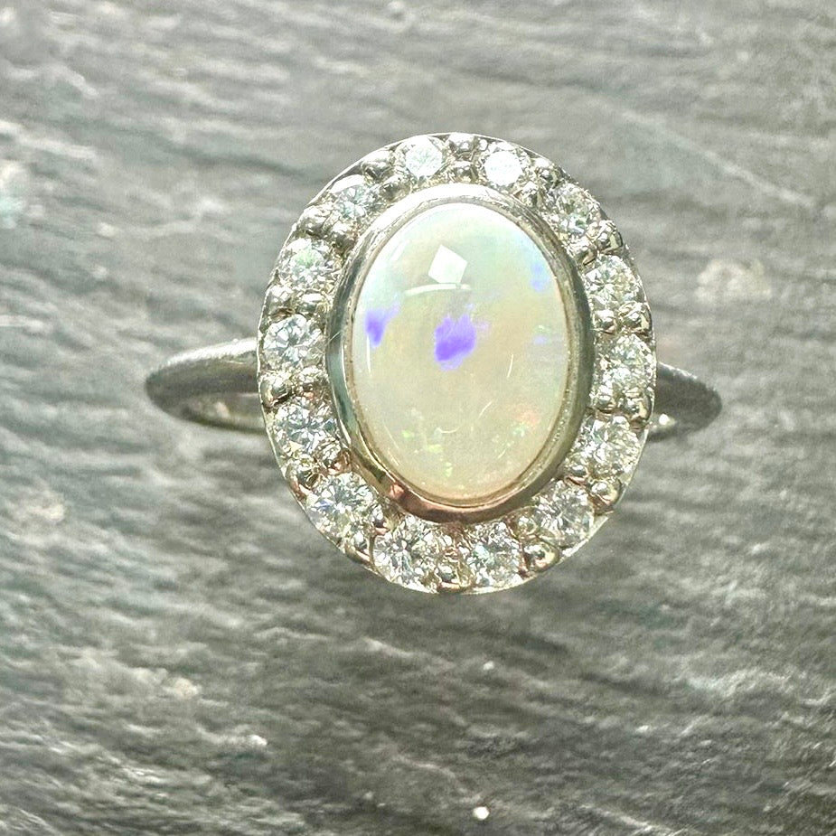 8mm x 6.5mm white oval Opal, lovely green and red hews