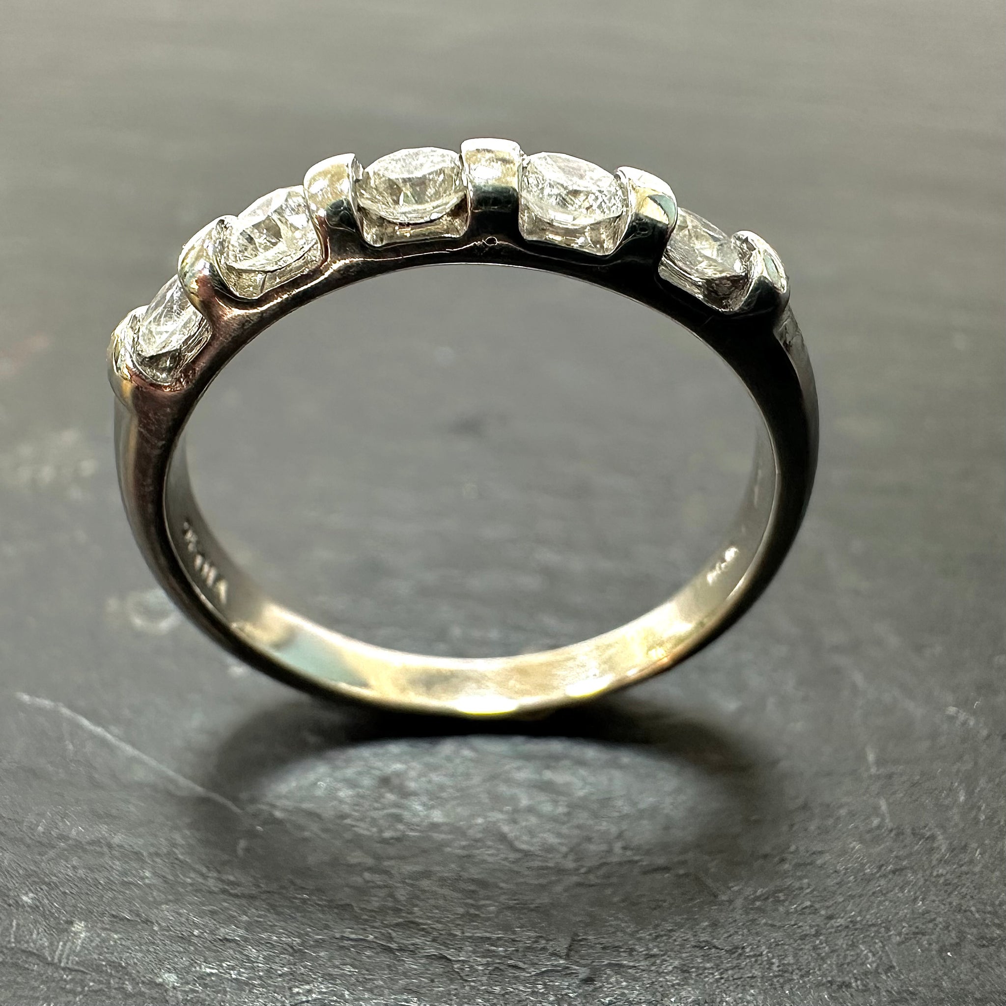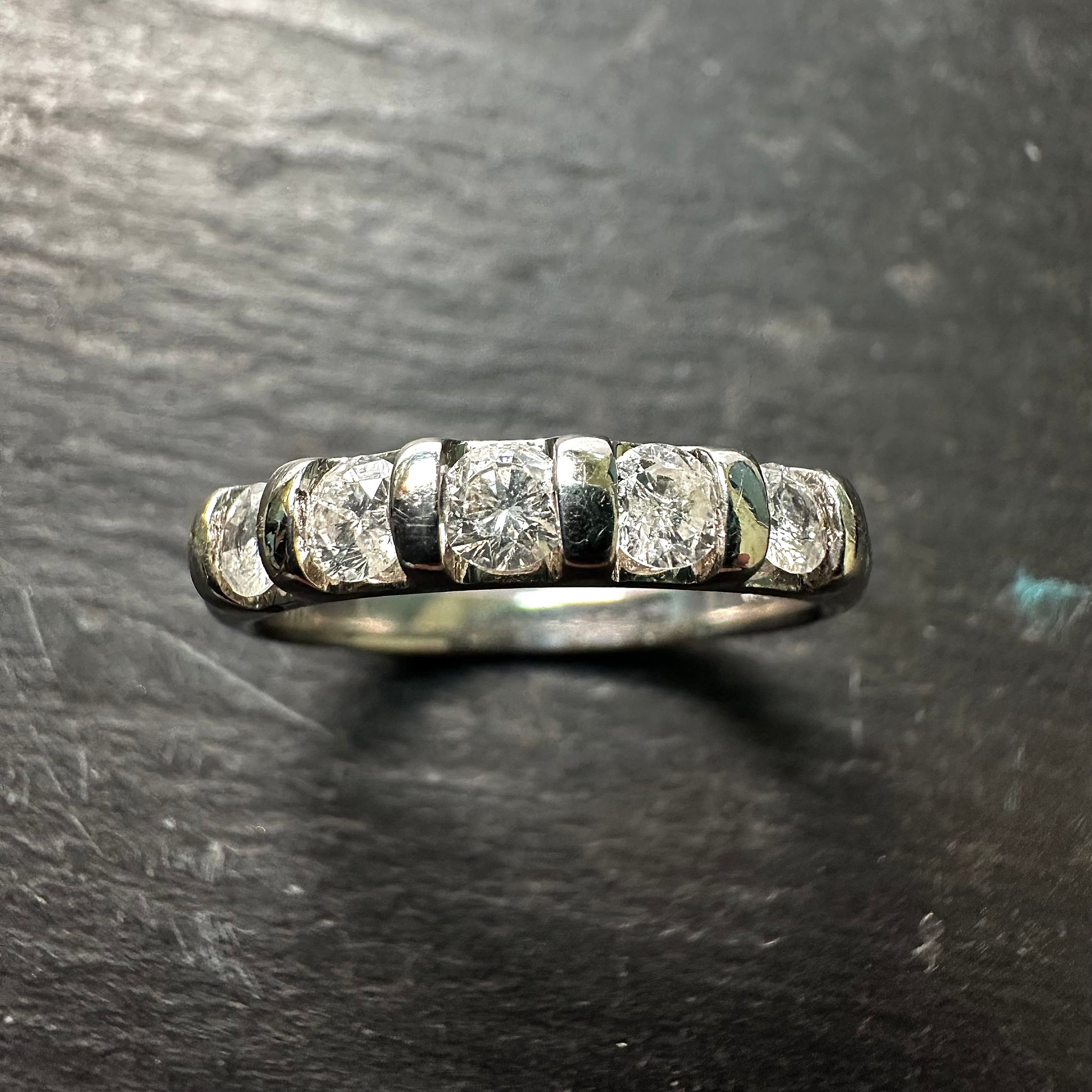 9ct White Gold 3.6mm wide tapering to 2.4mm, 5 stone diamond bar set eternity ring