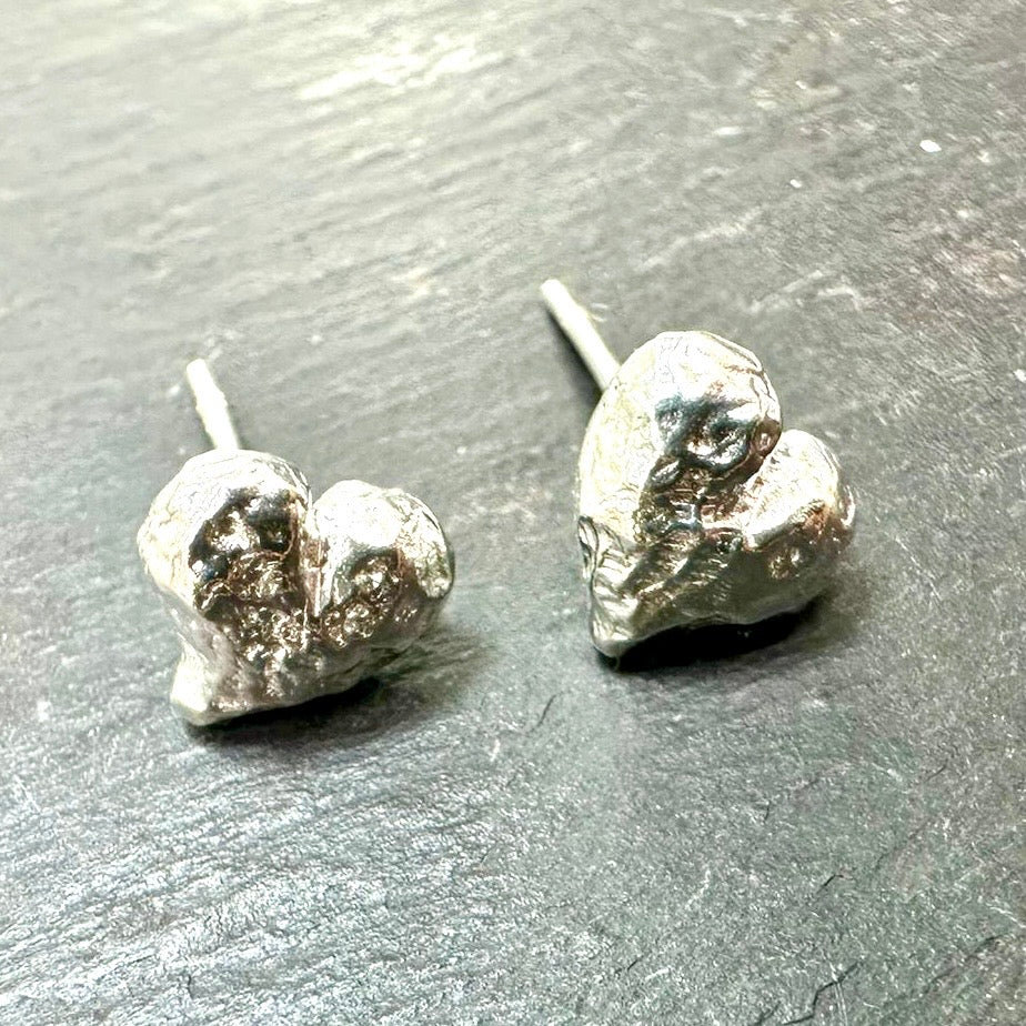 • Load image into Gallery viewer, Sterling Silver Hammered Heart Stud