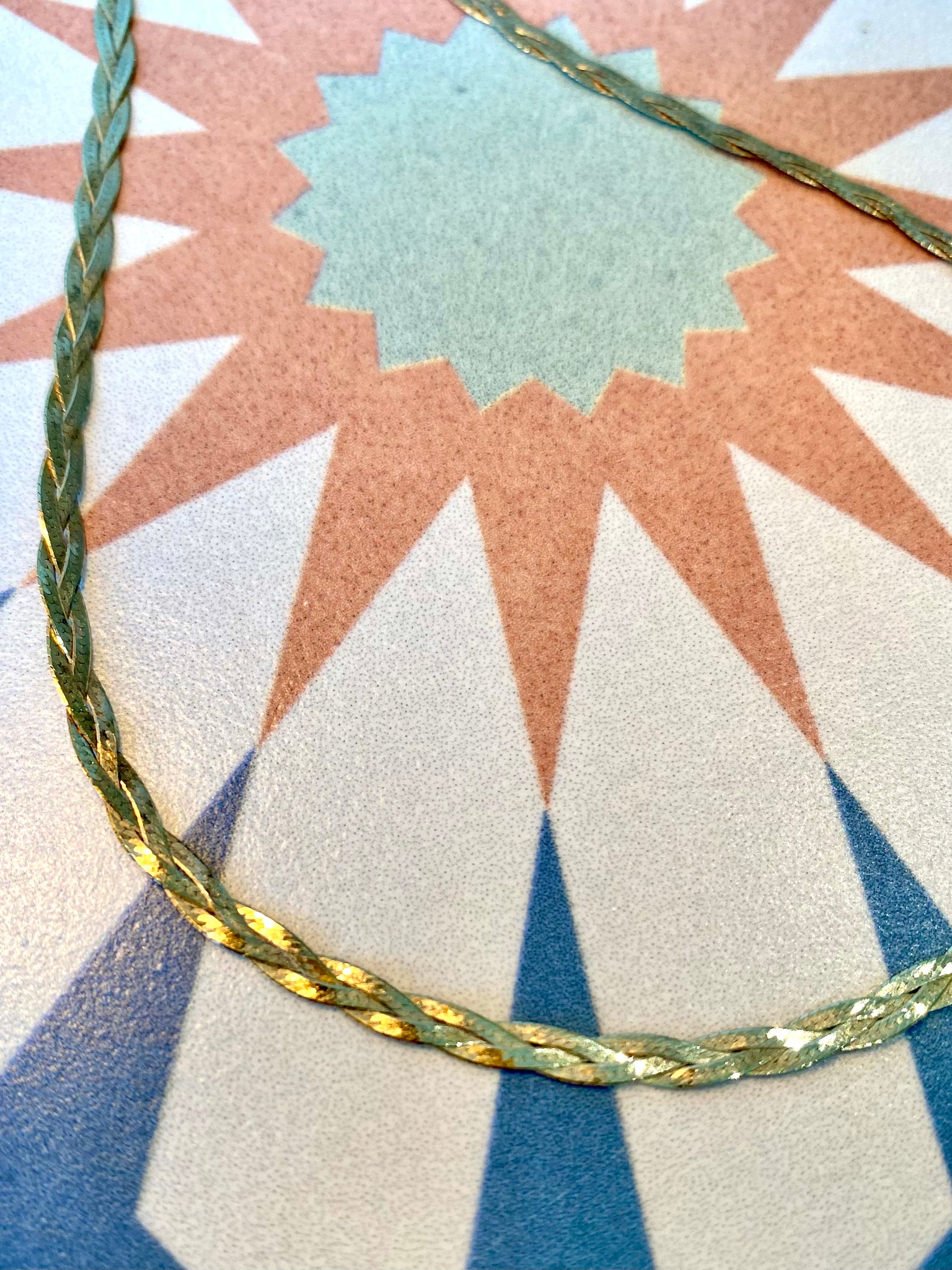 9ct Yellow Gold 3mm wide 3 row plated necklace 18", with bolt ring clasp